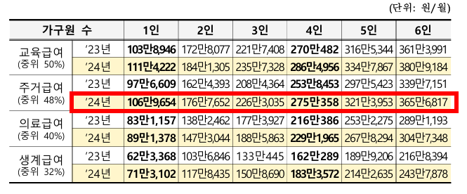 기초생활수급자 혜택을 받기 위해서는 가구단위별 기준 중위소득을 먼저 알아야 합니다.